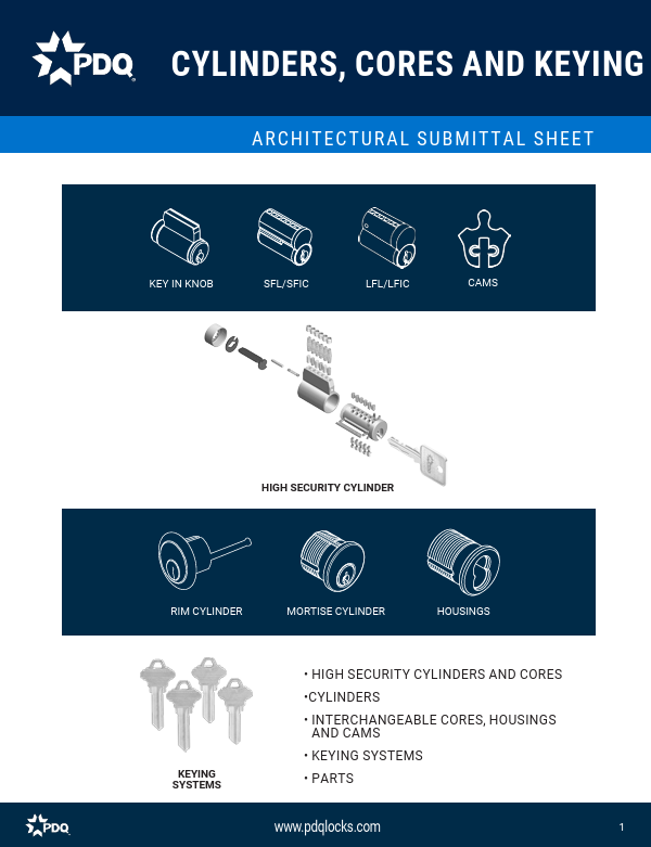 Introducing PDQ's High Security Cylinder Cores. These cores are designed to provide top protection for your property. Our High Security Cores are available in various formats, including the standard KIK (Key In Knob or Lever) and a Mortise/Rim Cylinder. Each of our PDQ High Security cylinder features two hardened anti-drill pins and a proprietary keyway with sidebar. These features provide maximum resistance against unauthorized access. Connect with a PDQ sales representative today to ensure your facility is secure.